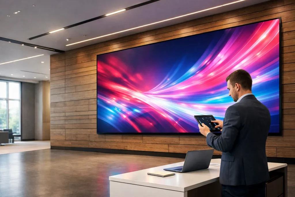 High-resolution indoor LED screens designed for showrooms, events, and control rooms with vibrant colors, smooth visuals, and seamless viewing experience.